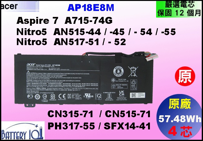 ì¼t AP18E8M¡i AP18E8M = 57.84Wh¡jAcerAN515-54 AN517-52 A715-74G ¹q¦À µ§¹q¹q¦À101-µ§°O«¬¹q¸£¹q¦À³Ì¨Î¿ï¾Ü
