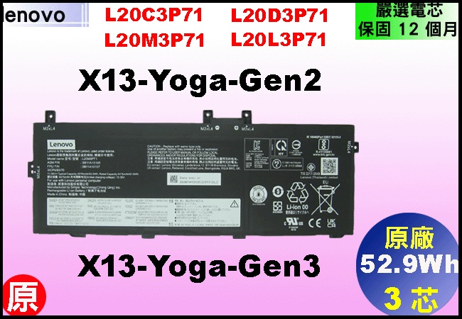 ì¼t L20M3P71¡iX13-Yoga-G2 = 52.9Wh¡jLenovothinkpad X13-Yoga-G2 / G3 ¹q¦À